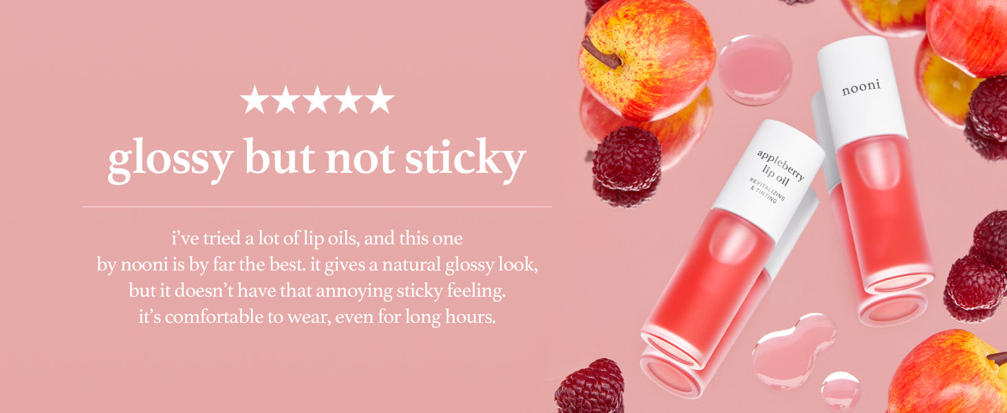 • NOONI Korean Lip Oil is a lightweight lip oil designed to help keep lips feeling soft, smooth, and hydrated. The formula glides on easily and provides a comfortable, non-sticky finish with a natural glossy shine.